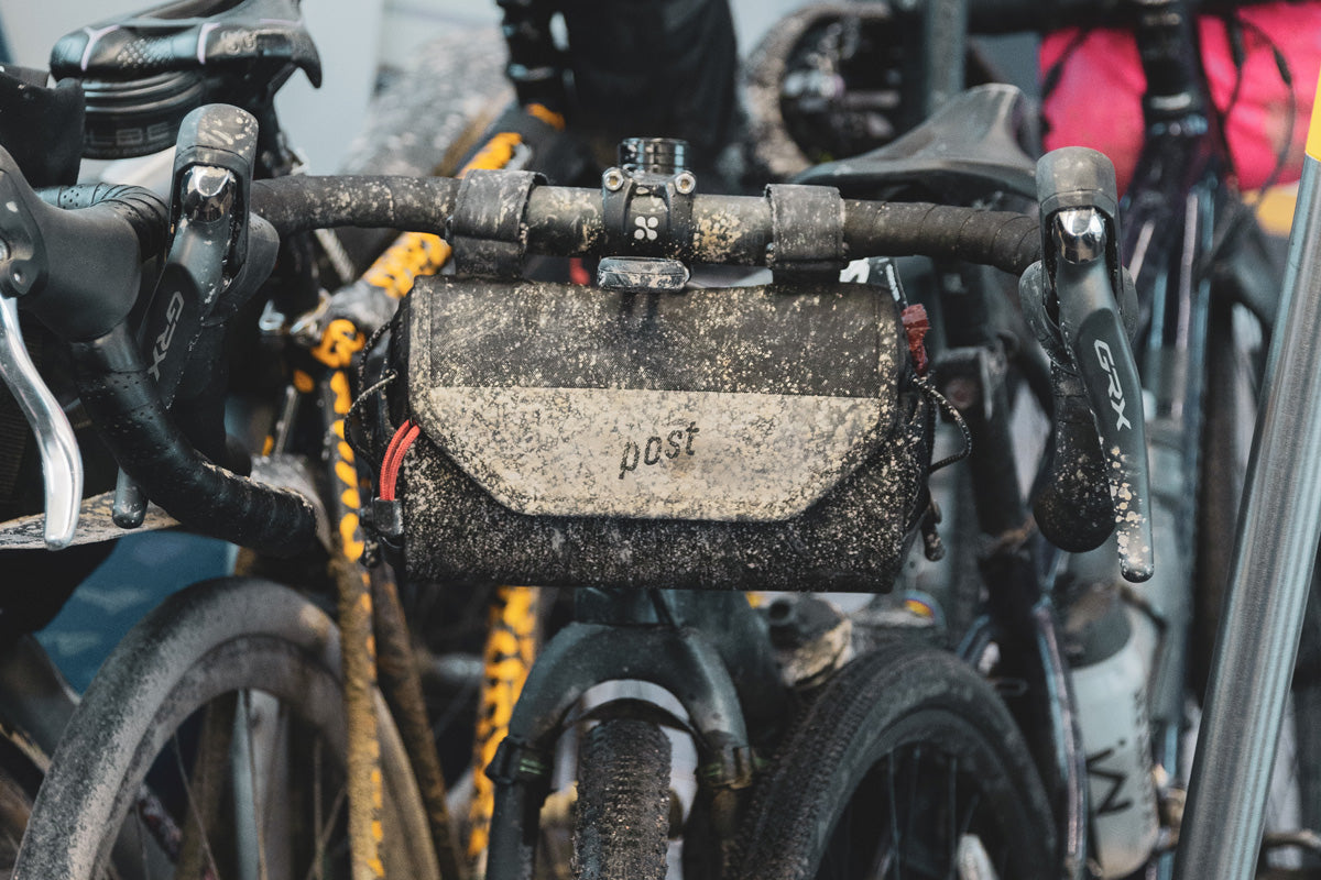 The flap's key role is to provide access inside the bag without needing to close the zipper after you reach inside. The flap snaps back into place with magnets and prevents contents from coming out, and provides additional rain protection. The flap also acts as a mounting point for pinning a Gran Fondo or gravel race number onto, while still keeping access to the main zipper. Place your items in and ride on!